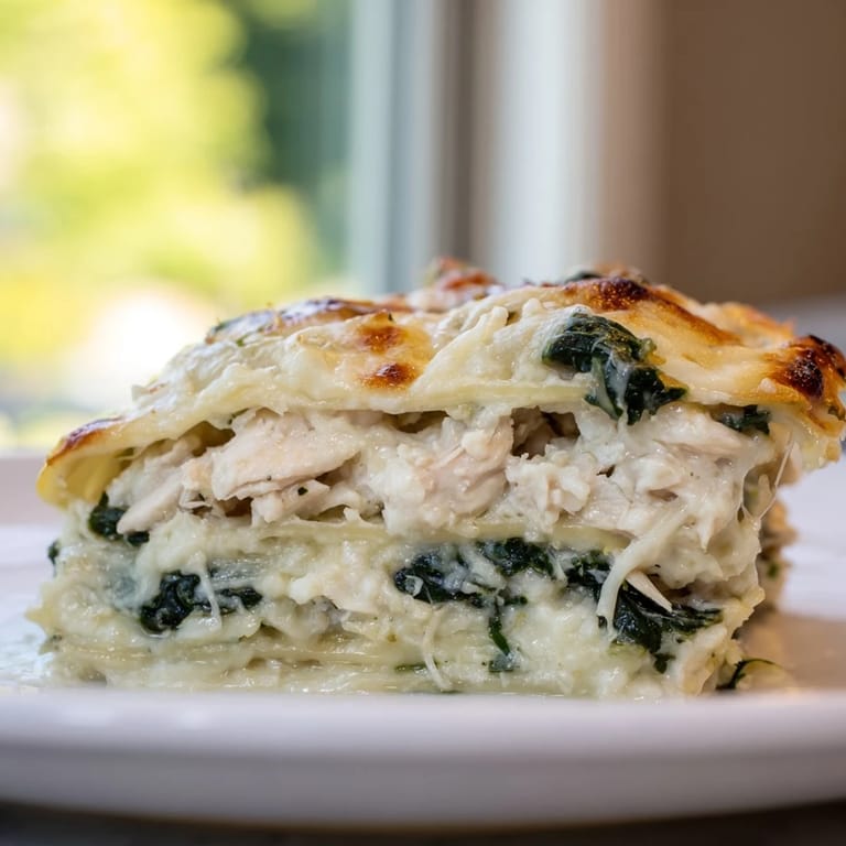 Swap the chicken for cooked shrimp or even flaked salmon if you want a seafood twist. You can also add sautéed mushrooms or sun dried tomatoes between the layers for extra depth. If youre feeding vegetarians, leave out the chicken entirely and double the spinach or add roasted zucchini. A pinch of nutmeg in the ricotta mixture brings a subtle warmth that feels very traditional Italian.