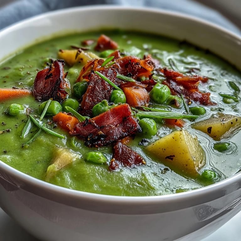 Save Pin There's something almost meditative about watching split peas soften into creamy submission, transforming from hard little pellets into the soul of a soup that tastes like it took all day to make. My kitchen smelled like heaven the first time I made this properly, with carrots and celery singing together in olive oil before the broth came in. The soup sat there on the stove, bubbling quietly, asking for nothing but patience and the occasional stir. What struck me most wasn't the cooking itself, but how the house filled with this warm, savory cloud that made everyone gravitate toward the kitchen without invitation. This is the kind of soup that reminds you why people gather around tables in winter.