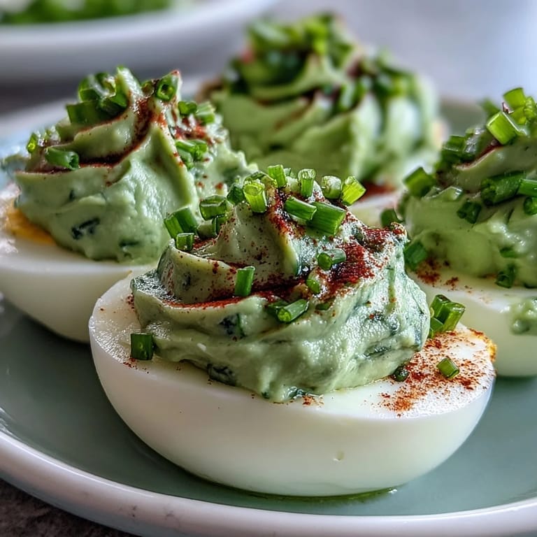 Save Pin My cousin brought these to a summer potluck, and I couldn't stop eating them—the creamy avocado filling made everything else on that table feel boring by comparison. There's something about the bright green color that makes people curious before they even taste one, and then they're hooked. I spent the next week trying to recreate them in my own kitchen, and honestly, once you nail the balance of lemon and mustard against that buttery avocado, you'll understand why they disappeared so fast.