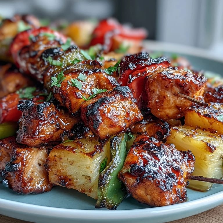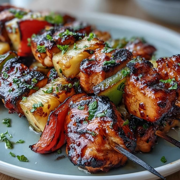 Save Pin My neighbor knocked on the fence one afternoon holding a bag of fresh pineapple, asking if I wanted to experiment with something different on the grill. That casual conversation turned into these kabobs—a dish that's now become my go-to whenever the weather turns warm and people gather outside. There's something about threading colorful peppers and juicy pineapple onto skewers that feels less like cooking and more like building edible art. The marinade is the magic that makes everything sing together.