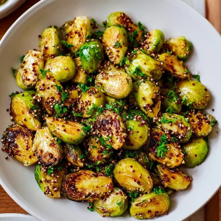 Save Pin I discovered the magic of Brussels sprouts by accident one November when my neighbor dropped off a bag from her garden and challenged me to make something that wouldn't taste like regret. That's when I threw together whatever was in my pantry—honey, mustard, a splash of vinegar—and roasted them until the edges turned almost black and crispy. The kitchen smelled incredible, and honestly, I've made them the same way ever since because nothing else comes close.