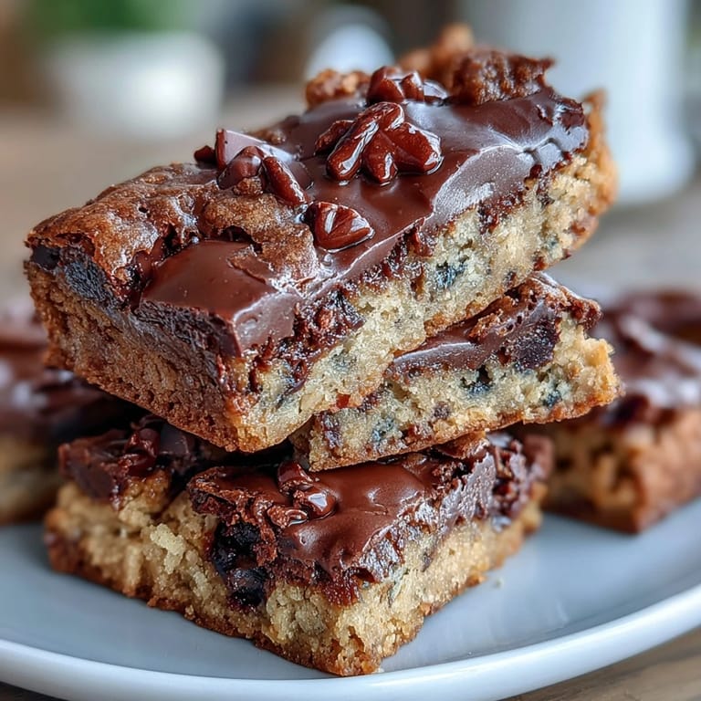 - Let them cool completely in the pan before you even think about cutting—warm bars fall apart, but cooled bars slice cleanly. Use the parchment overhang to lift everything out, then cut with a sharp knife in clean downward strokes rather than sawing.