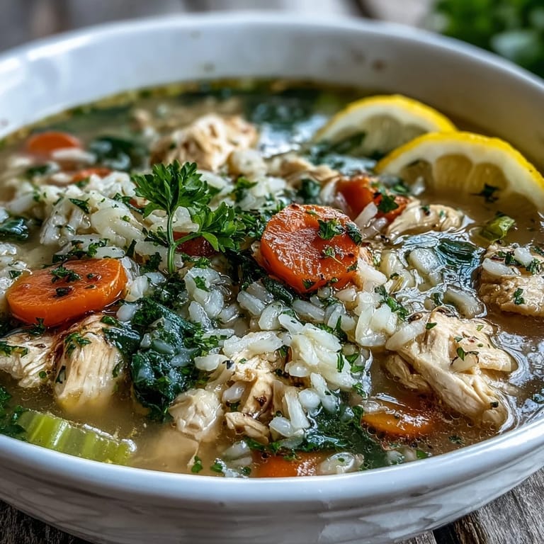 Chicken provides lean protein, rice becomes your satisfying carbohydrate, and vegetables add fiber and nutrients all in one bowl. The broth ties everything together while the lemon keeps it from tasting heavy, which is why you can serve this to someone who's sick, someone who's rushed, or someone who just wants real food without fuss.