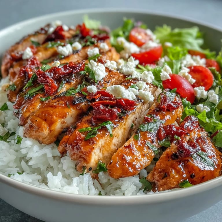 Once you understand how the sun-dried tomatoes anchor this bowl, you start seeing possibilities everywhere. Brown rice or quinoa swaps in beautifully if you want more fiber, and I've made it with goat cheese instead of feta when that's what was in the fridge. The core principle stays the same: marinate, cook, assemble with fresh elements on top.