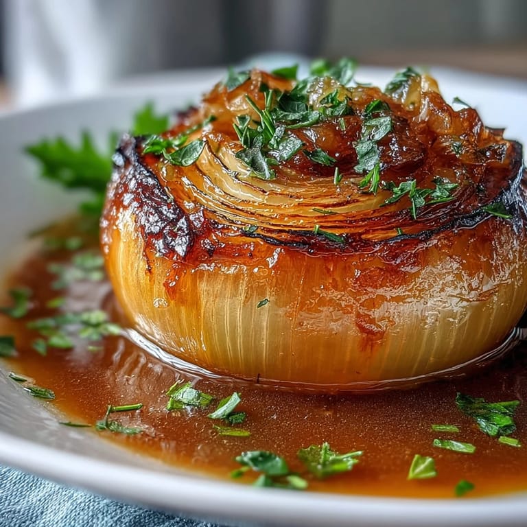 Save Pin There's something oddly meditative about watching whole onions turn glossy and golden in simmering broth, their papery skins giving way to tender layers. I stumbled onto this dish during a rainy afternoon when I wanted something warming but not heavy, and ended up creating what's become my favorite comfort bowl. The magic isn't in complexity—it's in those quiet minutes of simmering, when the kitchen fills with garlic and herb-infused steam and suddenly you realize you've been standing there just listening to the gentle bubbling.