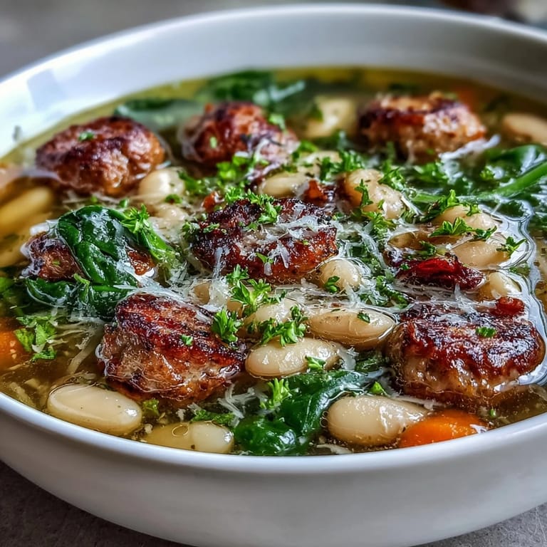 Save Pin There's something about the smell of Italian sausage hitting hot oil that makes you stop whatever you're doing—my kitchen filled with that savory, herbaceous aroma on a Tuesday afternoon, and suddenly the whole mood shifted toward comfort. This Tuscan white bean soup arrived in my life during one of those unpredictable autumn weeks when the temperature drops and you need something substantial but not heavy. It's the kind of dish that transforms simple ingredients into something that tastes like it simmered for hours, even though it comes together in less than an hour. The cannellini beans give it a creamy richness without any cream, the sausage adds depth, and the fresh spinach wilts right in at the end like a gentle finishing touch.
